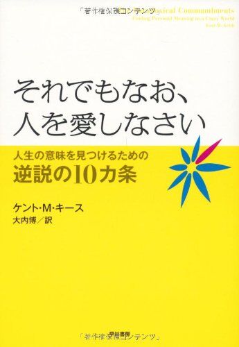 感動した。人生ってここに書かれた通りだと私は想う。 人は不合理で、わからず屋で、わがままな存在だ それでもなお、人を愛しなさい 今日の善行は明日になれば忘れられてしまうだろう それでもなお、良いことをしなさい 正直で率直なあり方はあなたを無防備…