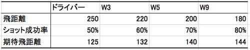 ティーショットはドライバーを捨ててから逆に安定した。結局、ティーショットの飛距離とは実際には、「そのクラブで飛ばせる距離 × ショット成功の確率」ということになる。これはあくまで思考実験で実際に計測した距離ではない。ドライバーで250ヤードな…