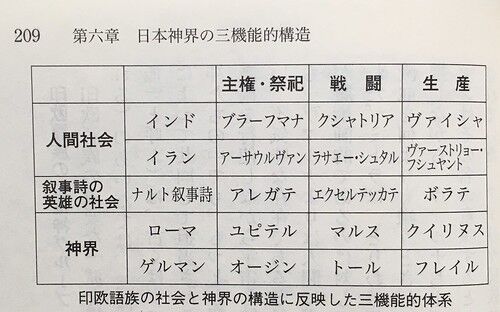 「日本神話の源流」を読了して疑問が浮かび上がった。最後まで来て吉田敦彦先生は、日本の神話を師であるデュメジルの三機能仮設に当てはめていらっしゃる。 (デュメジルの)この仮説によれば、原印欧語族の社会と宗教および神話は、上位から順に「主権」「…