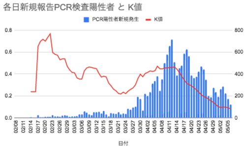 前回、K値について理解を深めるためのエントリーを書いた。今回は自分の手持ちのデータをもとにDo It Yourselfで計算してみた「感想」。hpo.hatenablog.comK値が示しているのは新型コロナウィルスの感染は、各国のデータを見ても指数関数的ではなく増加率を…